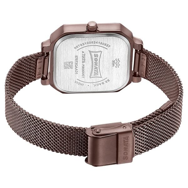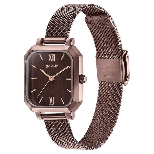 Sonata Modern Edit Quartz Analog Brown Dial Brown Stainless Steel Strap Watch For Women 87072qm01