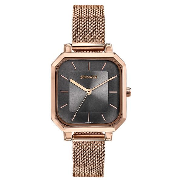 Sonata Modern Edit Quartz Analog Grey Dial Stainless Steel Strap Watch For Women 87072wm01