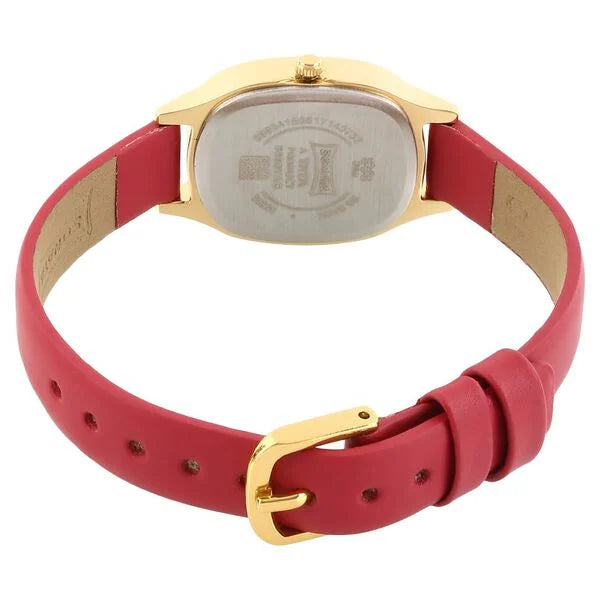 Sonata Quartz Analog Red Dial Leather Strap Watch for Women - 8060YL03