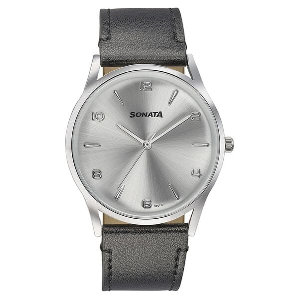 Sonata Quartz Analog Silver Dial Black Leather Strap Watch For Men 77140sl01