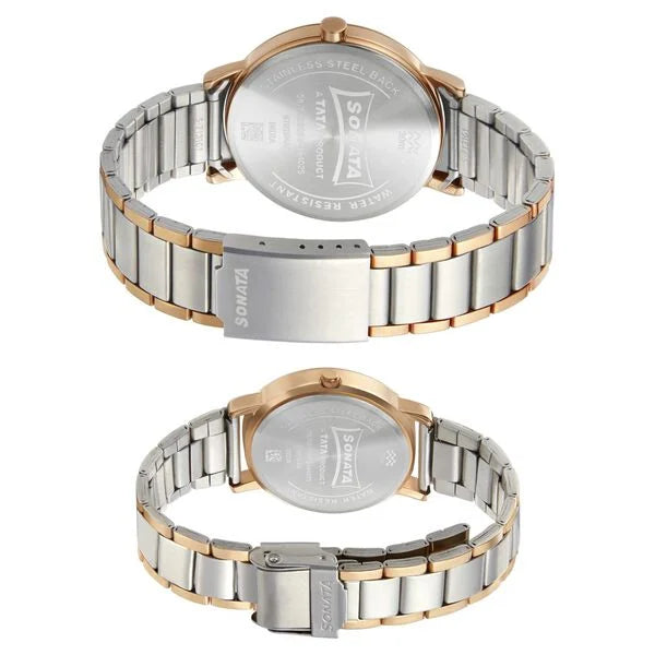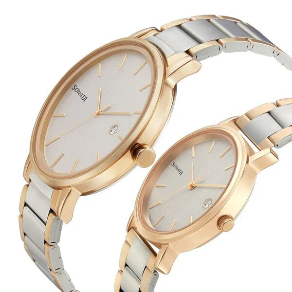 Sonata Quartz Analog with Date White Dial Metal Strap Watch for Couple 713187029KM019P