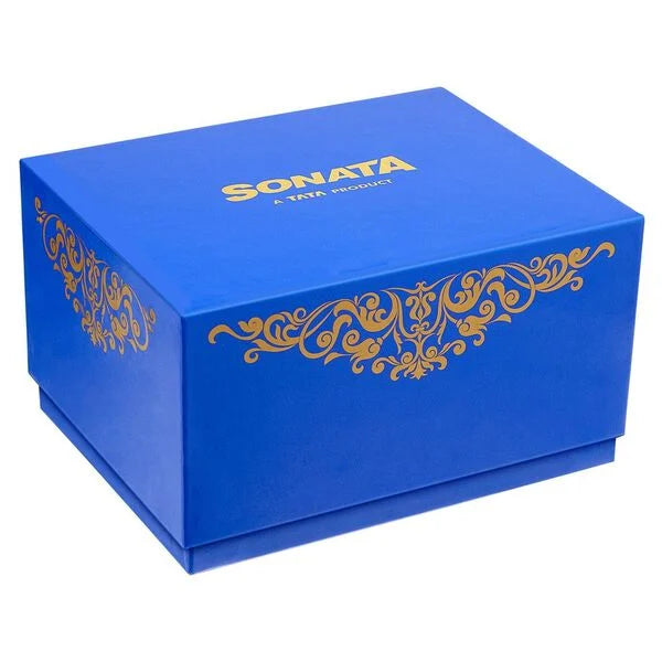 Blurring the boundaries between form and functionality, this couples' analog watch from the Pairs collection by Sonata is a must-have. Operated by a quartz movement, the grey round dial is encased in a 49.5 mm case. It features plain three hands and a crown for time adjustment. The stainless steel bracelet showcases a silver hue that uplifts the look of the watch. Furthermore, it is completed with a fold-over clasp to ensure a secure fit on the wrist. This water-resistant watch will be your timeless possession.