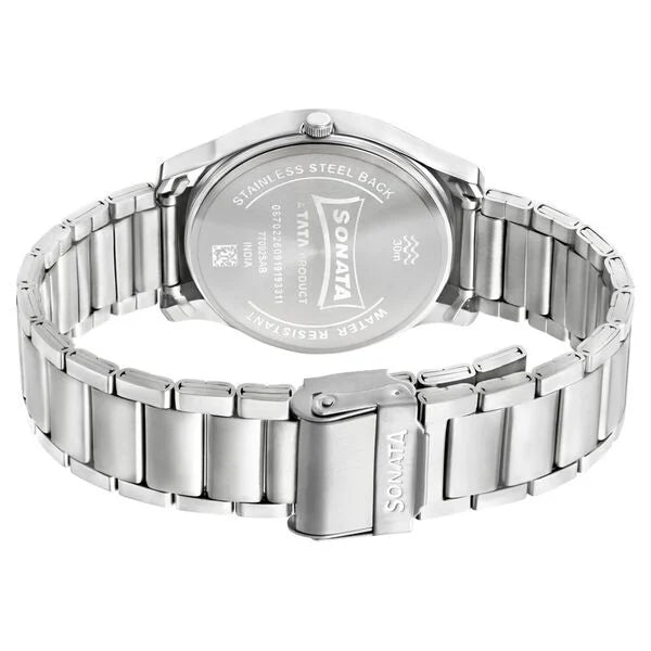 Sonata Quartz Analog with Day and Date Silver Dial Stainless Steel Strap Watch for Men NS77082SM02w / 77082SM02W