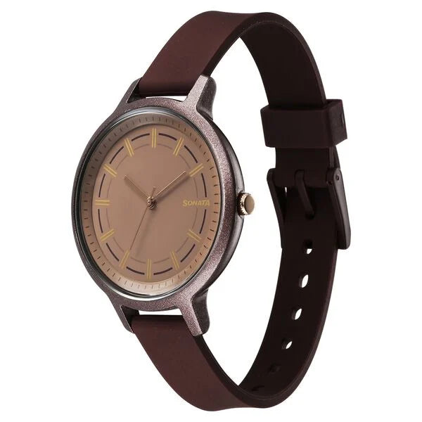 Sonata Splash Quartz Analog Brown Dial Plastic Strap Watch for Women 87049pp19w
