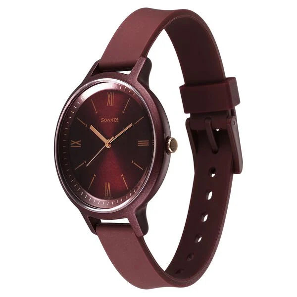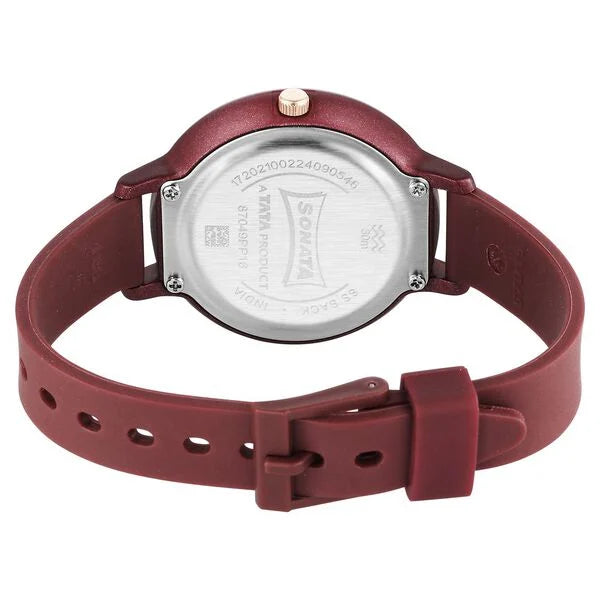 Sonata Splash Quartz Analog Maroon Dial Plastic Strap Watch for Women 87049pp16w