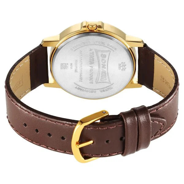 Sonata Traditional Essentials Quartz Analog Brown Dial Leather Strap Watch for Men 77083yl05