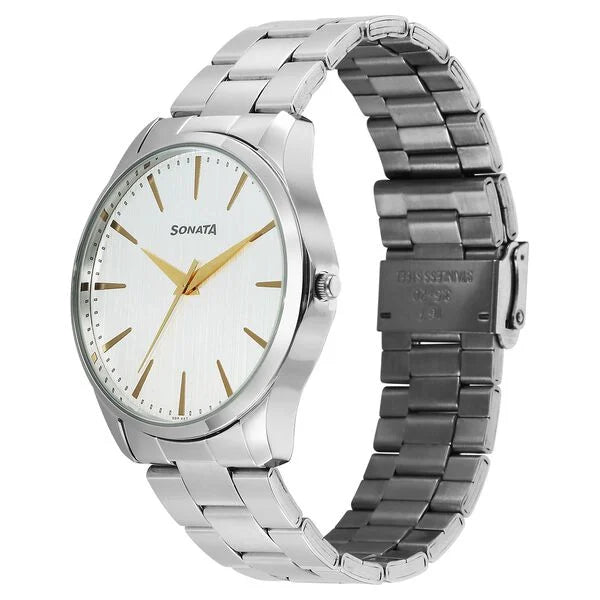 Sonata Traditional Essentials Silver Dial Watch For Men 77163sm02w