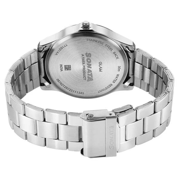 Experience perfection, one second at a time with this analog watch from Sonata. Encased in a 43 mm case, the white round-shaped dial is covered with mineral-colorless watch glass and features plain 3-hand functionality for time adjustment. The watch works on a quartz movement. The stainless steel bracelet comes in a gold hue that further elevates the look of the watch. Besides, it is water resistant up to 30 m and is completed with a hook buckle to ensure a secure fit on the wrist.