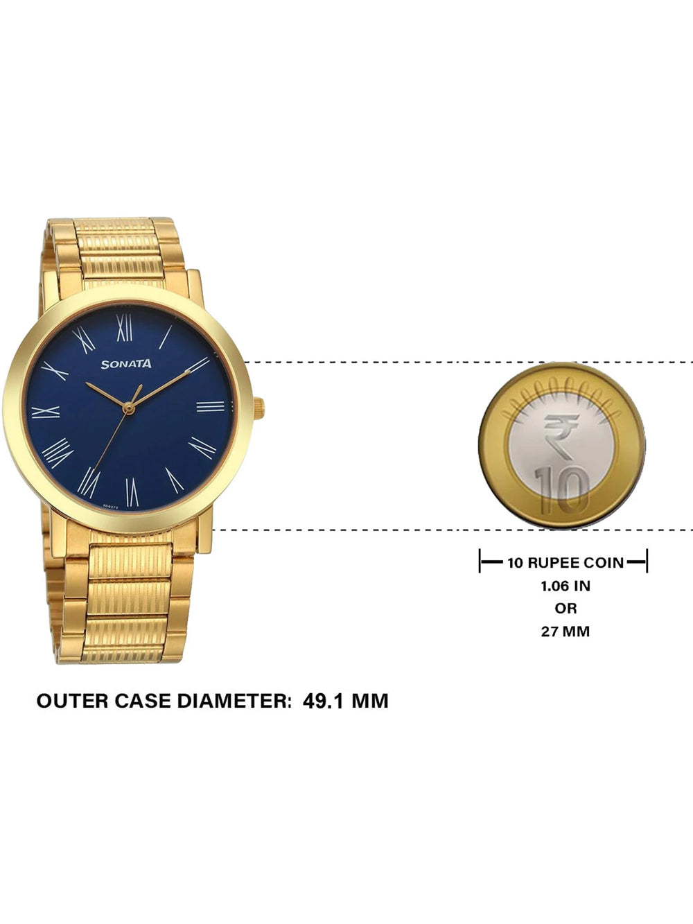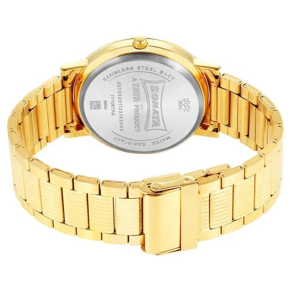 The Sonata Utsav Quartz Analog Men's Watch (77108YM14) features a sleek green dial paired with a durable stainless steel strap, offering a perfect blend of style and functionality. It includes a day and date display, making it both practical and elegant for everyday wear.