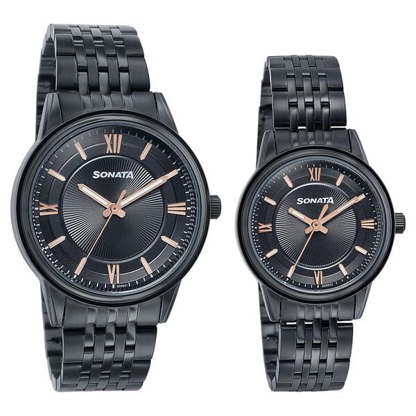 Sonata Wedding Edit Quartz Analog Black Dial Stainless Steel Strap Watch For Pair 7715487076nm01