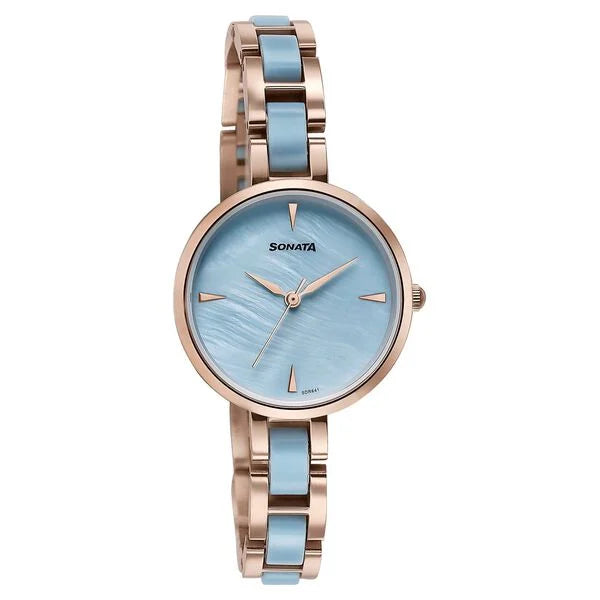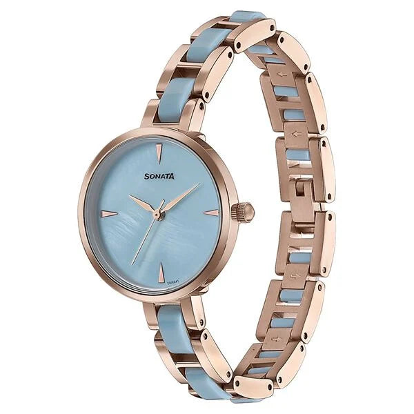 Sonata Wedding Edit Quartz Analog Blue Dial Stainless Steel With Acetate Strap Watch For Women 87064kd04