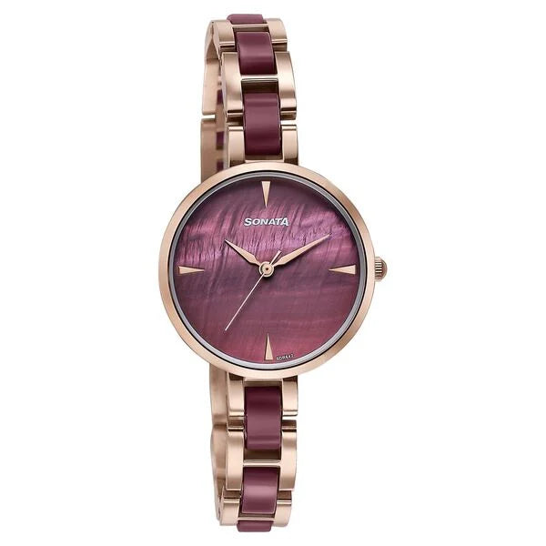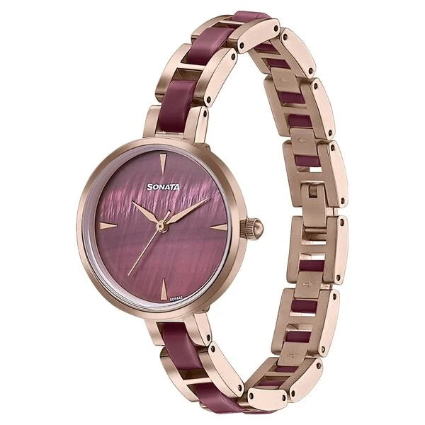 Sonata Wedding Edit Quartz Analog Maroon Dial Stainless Steel With Acetate Strap Watch For Women 87064kd05