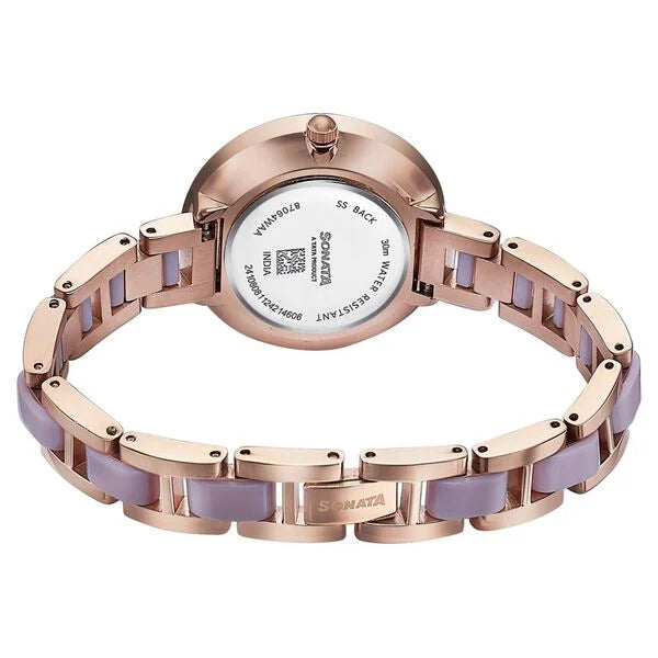 Sonata Wedding Edit Quartz Analog Purple Dial Stainless Steel With Acetate Strap Watch For Women 87064KD03
