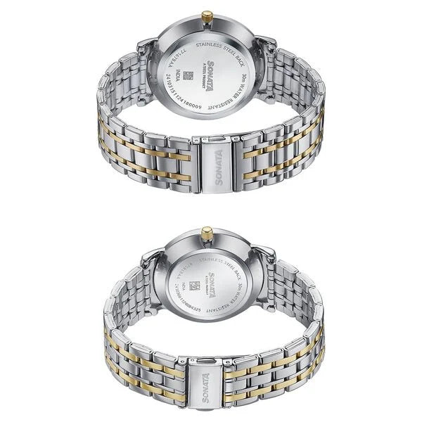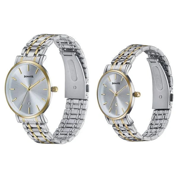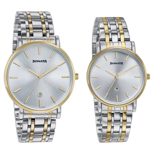 Sonata Wedding Edit Quartz Analog with Date Silver Dial Stainless Steel Strap Watch For Pair 7716787086bm01