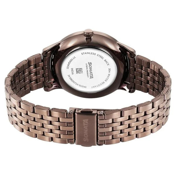 Sonata Wedding Quartz Analog Brown Dial Stainless Steel Strap Watch For Men 77153qm02