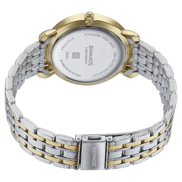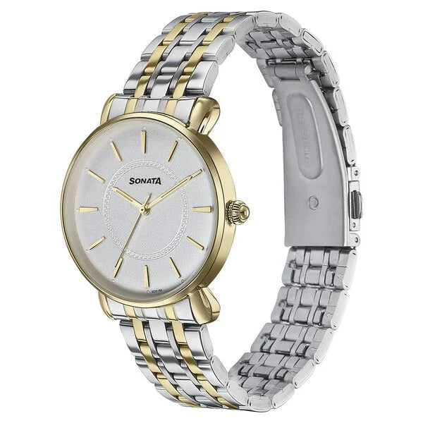 Sonata Wedding Quartz Analog Off White Dial Stainless Steel Strap Watch For Women 87075bm01