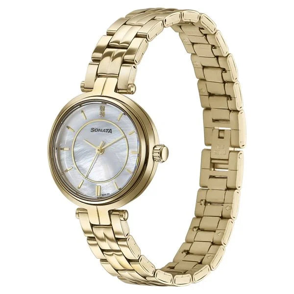 Sonata Wedding Quartz Analog Off White Dial Stainless Steel Strap Watch For Women - 87077YM01