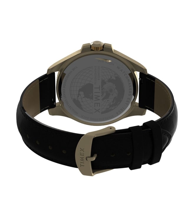 Our Harborside Coast is a refined timepiece designed with nautical influence at the helm. Featuring a 100-meter water resistant 43mm case, this diver-inspired watch stands out on the wrist with a casual, black leather strap. A simple black dial with a touch of metal adds subtle hints of old-world luxury to an otherwise modern, adventure-ready physique. Complete with an anodized aluminum inlay on a rotating bezel, date feature with date magnifier, and luminescent paint on the markers and hands, the Harborside Coast is ready to set sail.