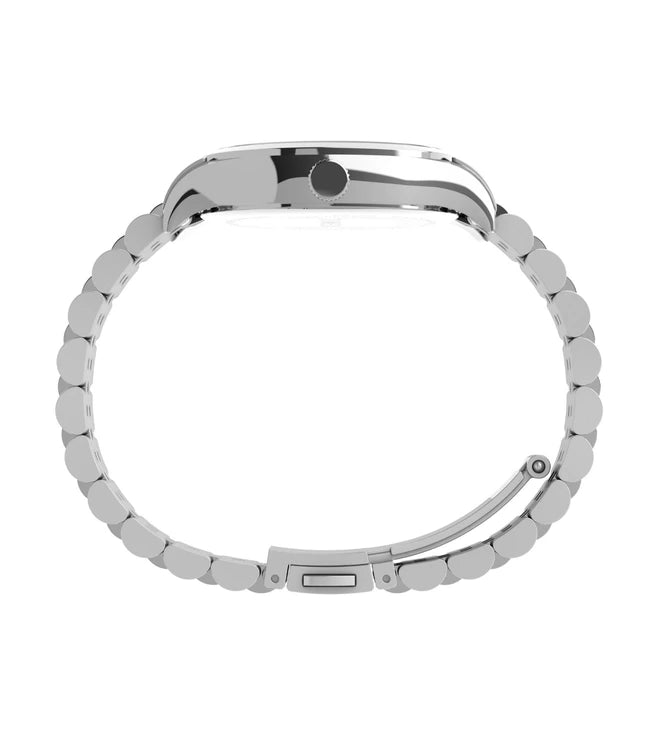 This women's analog watch from TIMEX merges performance with modern-day styling and will surely upgrade your accessory collection. The white round dial is protected by a mineral glass. It has crown for time adjustment. The stainless steel strap comes in a silver hue that further elevates the look of the timekeeper. Besides, it is completed with a fold-over clasp with double push button safety clasp to ensure a secure fit on the wrist.
