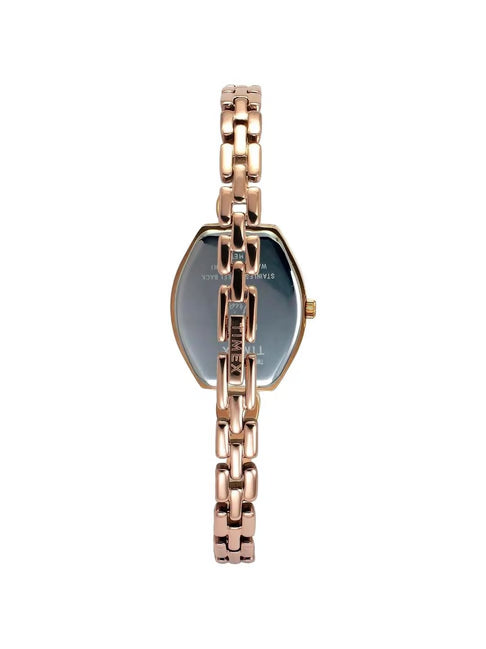 This women's analog watch from Timex merges performance with modern day styling and will surely upgrade your accessory collection. Its brass strap flaunts a rose gold hue that accentuates the look of the watch. Nestled in a 25.3 mm case, the mother of pearl tonneau dial is protected by a mineral glass. It showcases plain three hands. Furthermore, it is complemented with a jewellery clasp that ensures a secure fit on the wrist.
