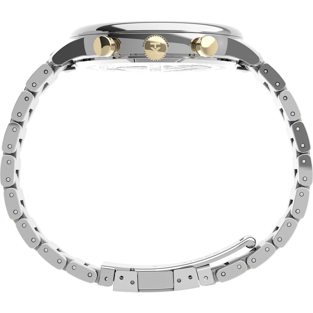 Inspired by the character-rich architectural language of Chicago, from its modern skyscrapers to its historic cityscape, this watch is both bold and refined with sophisticated dial and sub-dial textures, hand applied indices and a substantial two-tone stainless-steel bracelet. And thanks to the fully-functional chronograph and date display, you won't be short on practical features for wherever your day might take you.