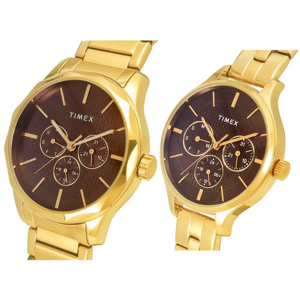 Timex Fashion Collection Premium Quality Multifunction Pair's Analog Brown Dial Coloured Quartz Watch, Round Dial With 44 Mm Case Width - TW00PR297