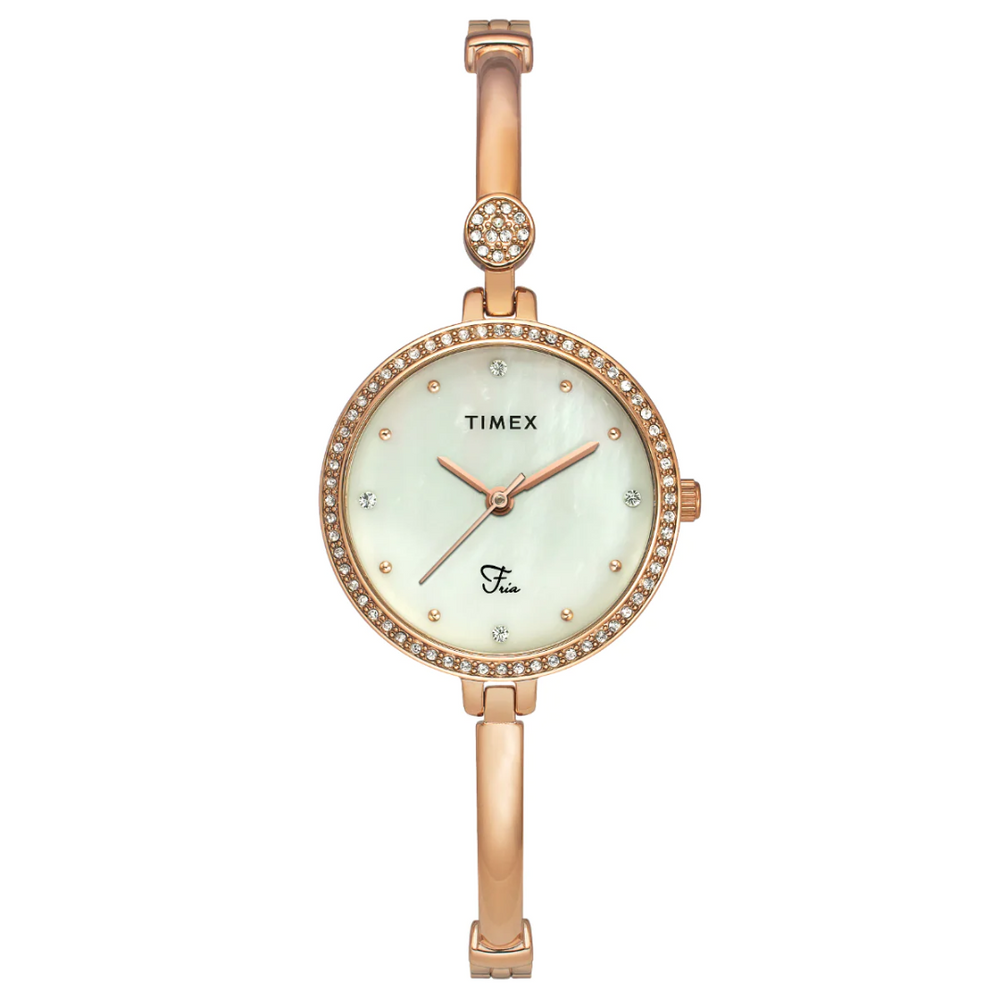 Timex Fria Women's Off White Dial Round Analog Brass Dial Watch TWEL18402