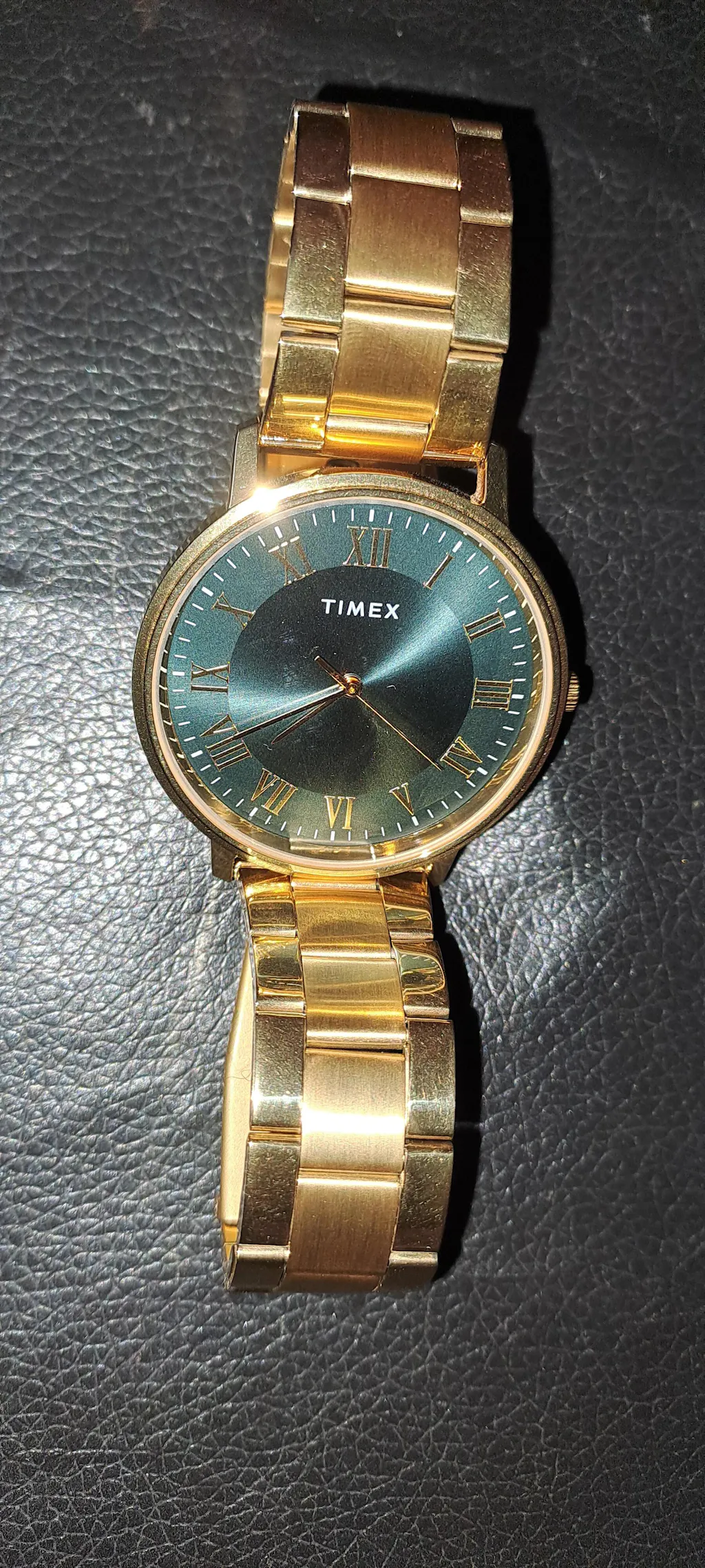 The Timex TW0TG8024 Men's Watch features a classic Green dial adorned with full Roman numerals, offering an elegant and timeless aesthetic. The durable stainless steel bracelet enhances its sophisticated appeal, making it suitable for both casual and formal occasions. With reliable quartz movement and a comfortable fit, this watch is a perfect blend of style and functionality for everyday wear