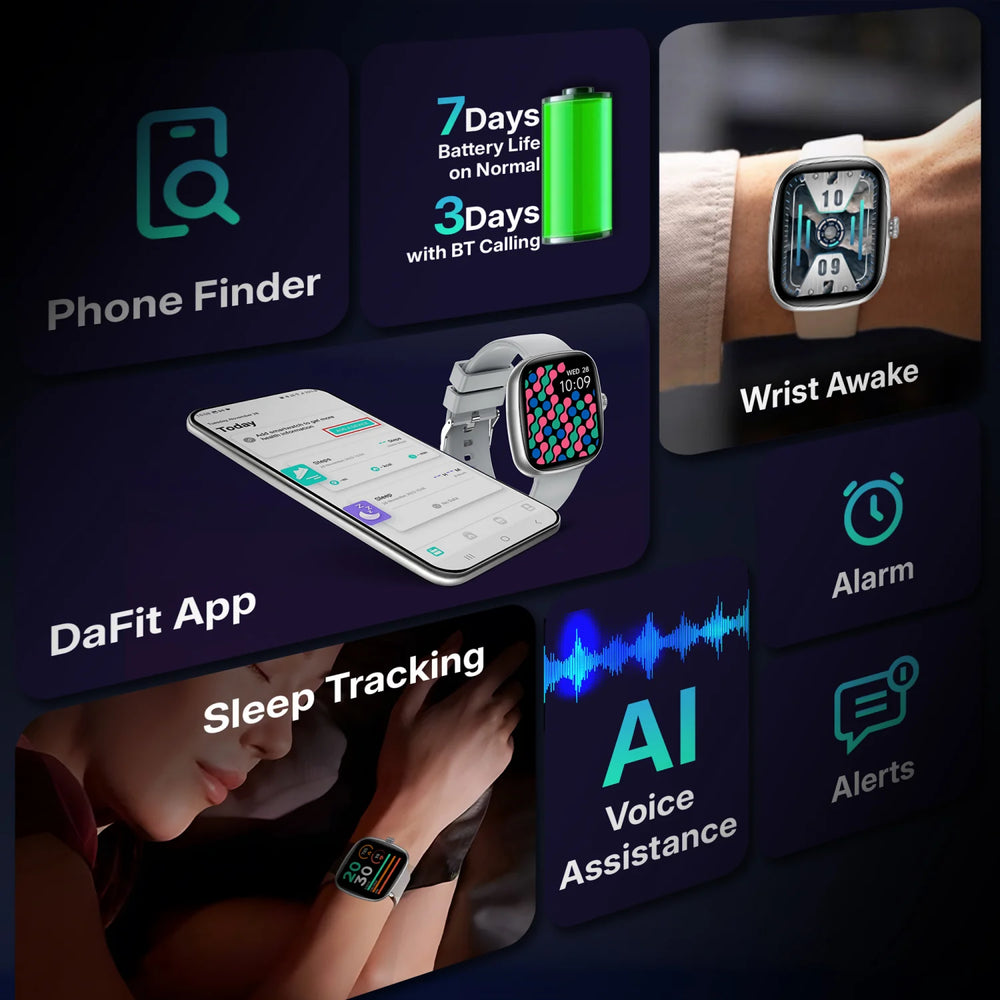 The Timex iConnect Calling ACE smartwatch seamlessly combines style and functionality with its elegant 1.83-inch screen. It offers smart notifications, heart rate monitoring, blood oxygen tracking, and a versatile activity tracker with 100+ sports modes. With 100+ watch faces, users can personalize their experience. With the interactive Dafit app, you can keep all the activity data saved on your smartphone.
