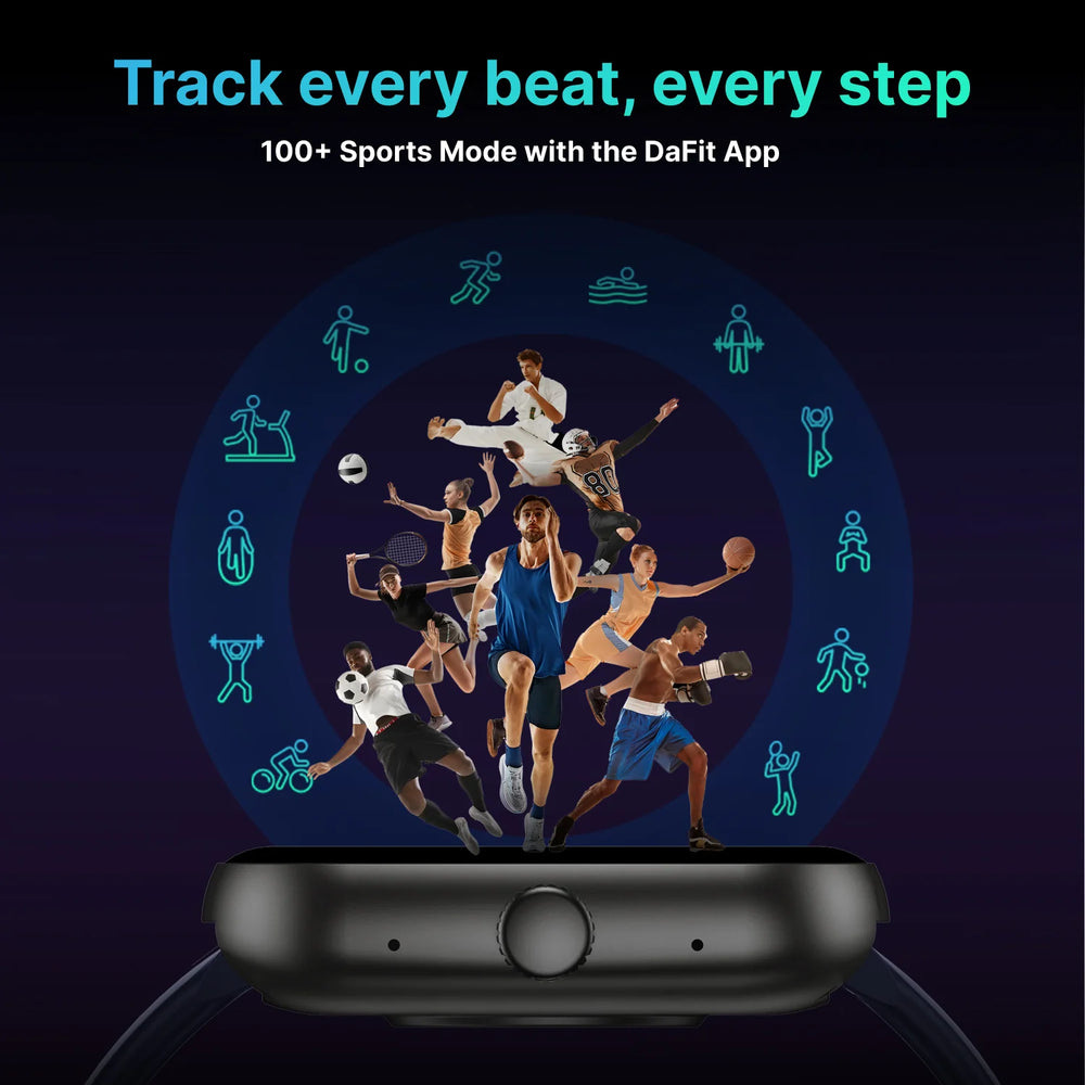 The Timex iConnect Calling ACE smartwatch seamlessly combines style and functionality with its elegant 1.83-inch screen. It offers smart notifications, heart rate monitoring, blood oxygen tracking, and a versatile activity tracker with 100+ sports modes. With 100+ watch faces, users can personalize their experience. With the interactive Dafit app, you can keep all the activity data saved on your smartphone.