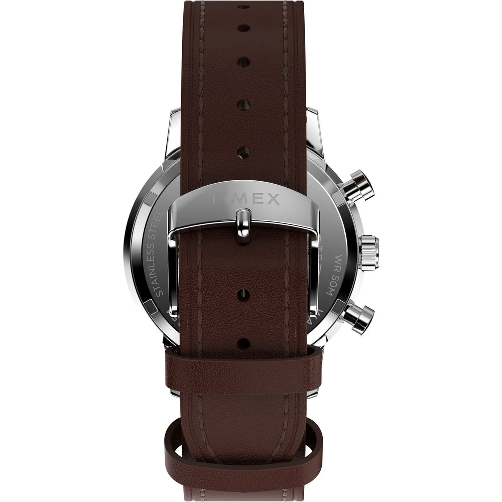 Our Marlin® Chronograph Tachymeter boasts the distinction of being the first chronograph in our Marlin line, as well as the first Marlin powered by a quartz movement. This beautifully detailed rendition features a tachymeter index along its outer minute track to measure speed, as well as a unique date window placement. We’ve paired it with a supple brown natural leather strap, sourced from the Leather Working Group® (LWG) and complete with quick-release spring bars. Though its build breaks new ground in our watchmaking heritage, this timepiece retains the classic Marlin features with a sturdy 40mm stainless-steel case, domed acrylic crystal lens, and retro-style applied indices at 3, 9, and 12 o'clock.