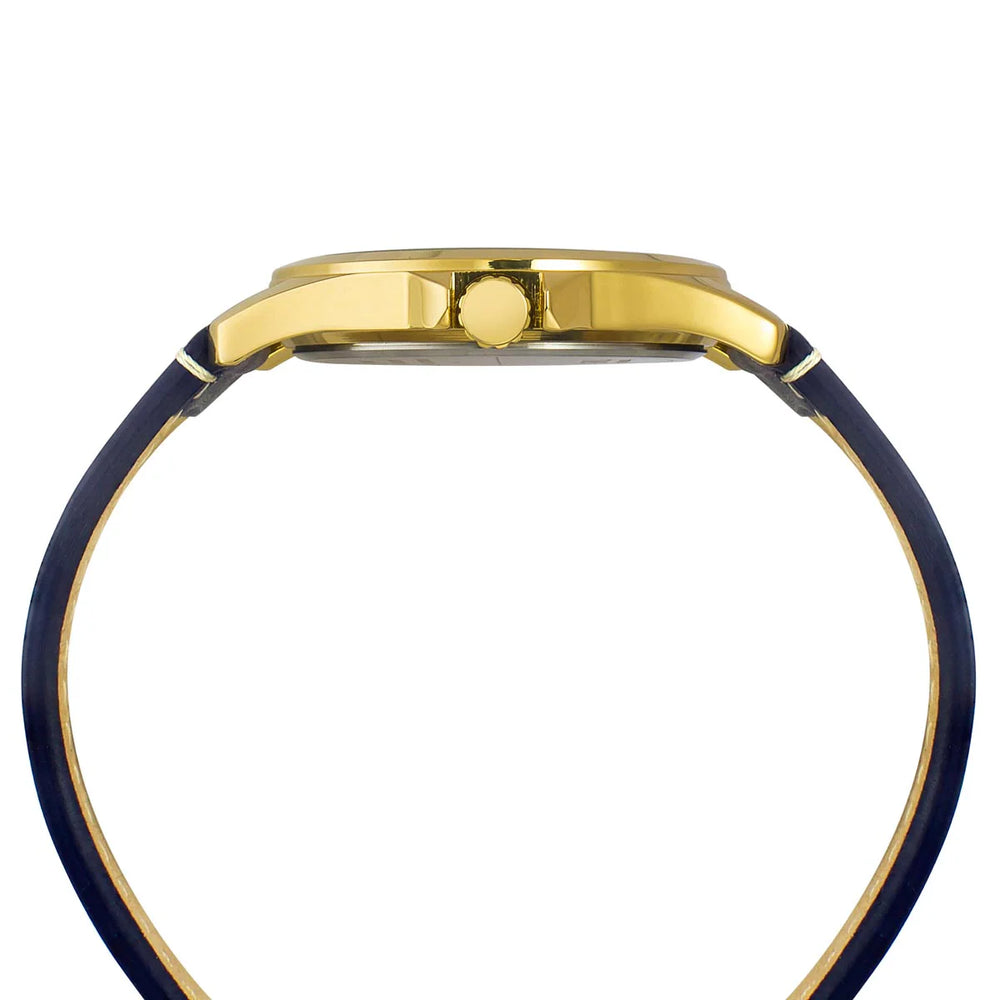 Featuring a blue round dial, this men's analog watch by Timex is sure to catch your attention. Enclosed in a 43.75 mm case, the dial is secured by a mineral glass. It exudes plain three hands. The leather strap comes in a blue hue that further elevates the look of the watch. Besides, it is finished with a buckle clasp that provides a secure fit on the wrist.
