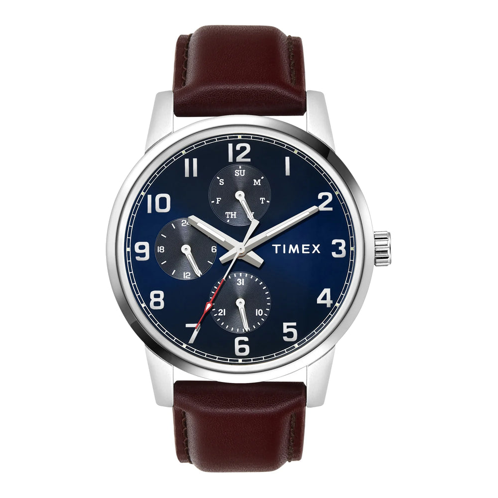 Timex Numero Sunray Dial Analog Men's Watch combines bold design with practicality. Featuring a full Arabic bold dial design for easy readability, this watch offers multifunctional features to keep you on track. The watch is finished with a rich leather strap, providing a sophisticated and comfortable fit for everyday wear. A perfect blend of style and function for the modern man.