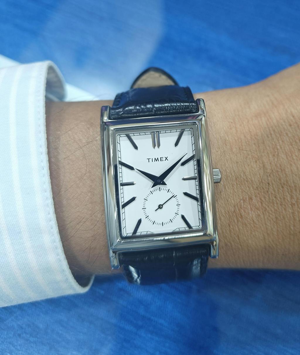Timex Rene Retro combines classic retro mod styling with modern functionality. Featuring a 44mm x 28mm retro rectangular case, this watch includes a remote second hand for precision and a rich leather strap with an option for a bracelet. A timeless piece for those who appreciate bold, vintage-inspired design. Designed to complement any style, the blend of classic design with modern functionality, ensuring durability and reliability.