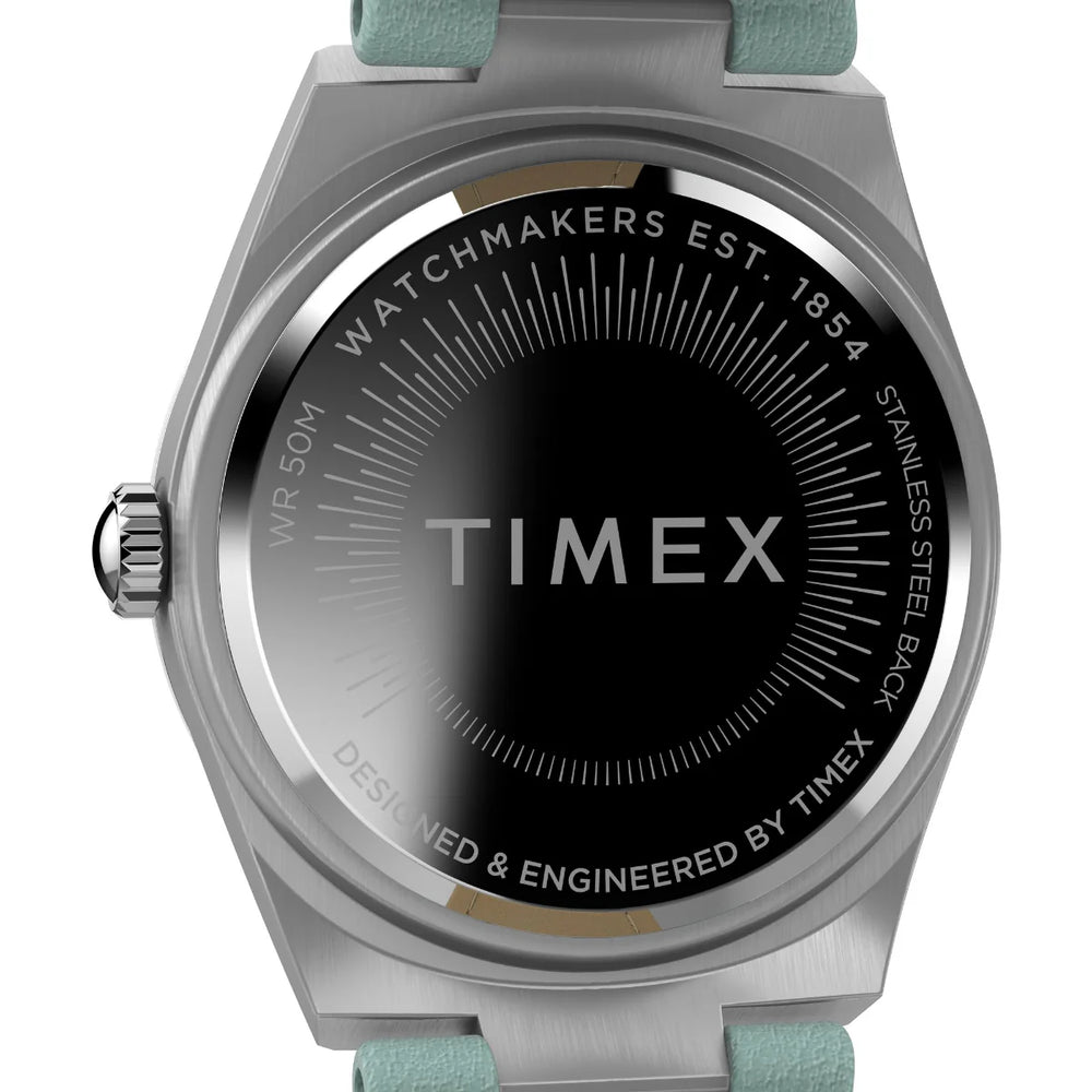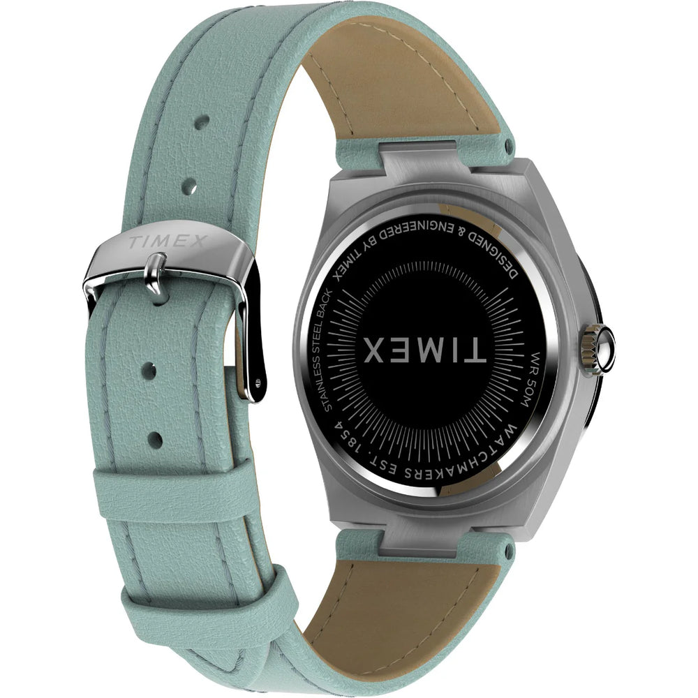 Our Simone has a crystal-encrusted bezel and a slightly curved barrel case that softens its silhouette. Tiny crystal markers illuminate the dial, which offers the intricate look of a chronograph in robin's egg blue. With a coordinating robin's egg blue leather strap, the styling possibilities are plentiful with this beautifully detailed timepiece.