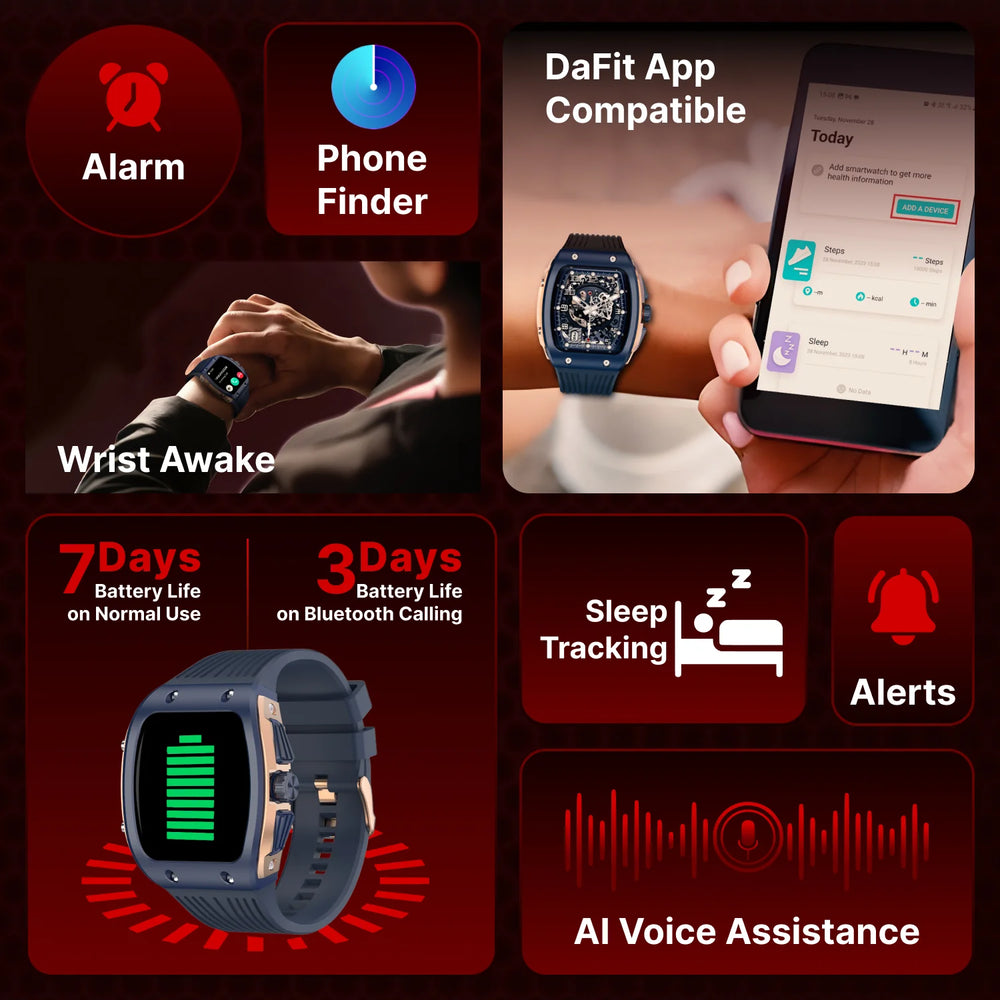 The Timex Smart CoreGen smartwatch combines style and toughness. This wristwatch redefines toughness with its elegant 1.76-inch(4.5 cm) screen and alloy metallic casing. The Timex Smart CoreGen offers many features, such as smart notifications, a functional crown, HRM, blood oxygen, an activity tracker, 100+ sports modes, and 100+ watch faces. With the interactive Dafit app, you can keep all the activity data saved on your smartphone.