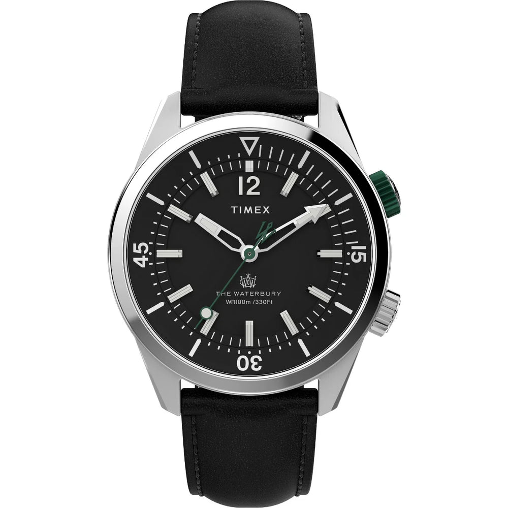 We’ve blended our favorite elements of the Waterbury Traditional case with a dive-inspired design to welcome a new quartz member into the family. Like all Waterbury's, this timepiece displays our attention to craftsmanship and detail with finely finished surfaces and careful applications of watchmaking ingenuity. In a nod to our original collection, The Waterbury Watch Company logo is featured on the dial and second hand, which bears the stylized W, while the 3-hand display with its internal turning elapsed time ring has been added to the existing case design.We’ve topped things off with a sophisticated black dial and leather strap that deliver function just as well as form.