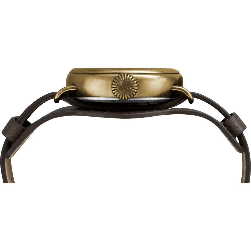 Inspired by the first Timex? wristwatch, our Welton is a handsome timepiece featuring a sub-second dial, brown strap and matching removable cuff using S.B. Foot Leather. This watch also features a Stainless Steel case with an antique bronze finish, cream dial and is water-resistant up to 30 meters.