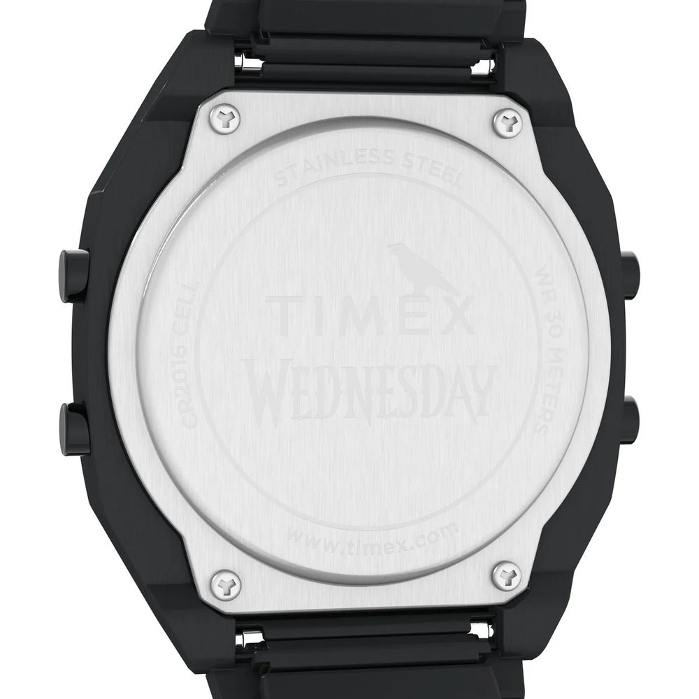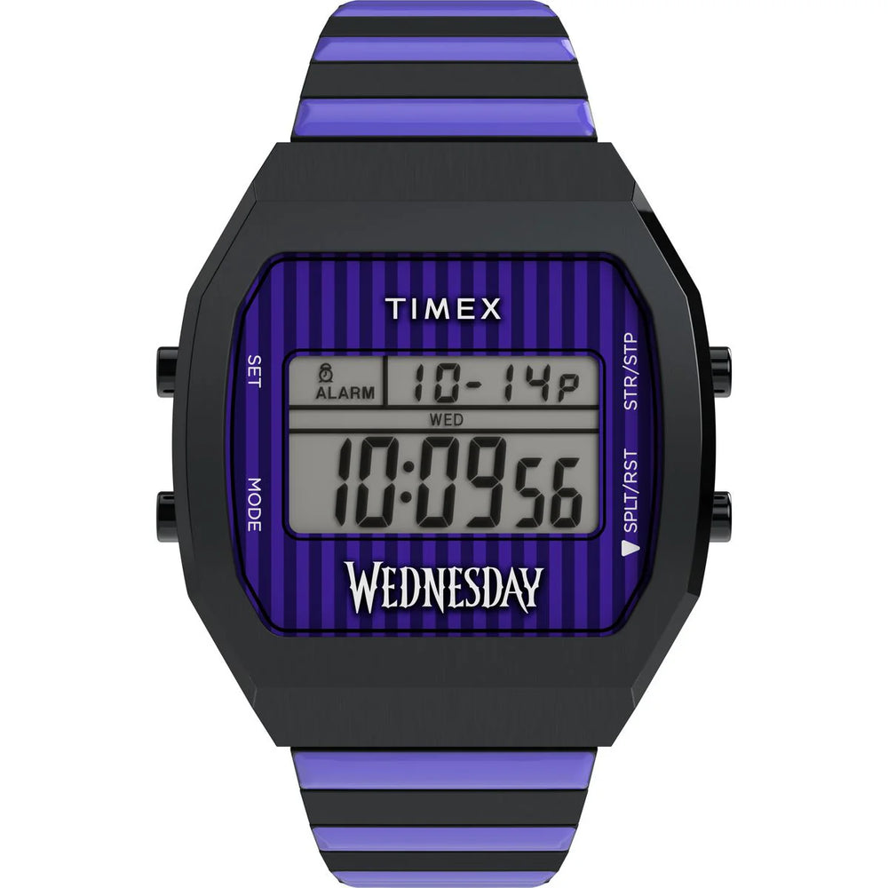 We’re unveiling a darkly delightful collaboration for those brave enough to embrace the macabre. The Timex x Wednesday T80 is laced with eerie details and a hint of mystery, presenting a 36mm stainless-steel case and bracelet in a fun purple and black colorway. When the INDIGLO® backlight is activated, a spider web emerges across the display, making for a watch that’s boldly bizarre, daringly different, and anything but ordinary. Plus, the expansion band features our Perfect Fit technology, requiring no tools to get a custom look and feel