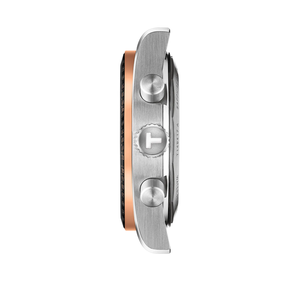 First introduced in the 1960s, the PR516 was inspired by the high-speed world of car racing. As Tissot expands the PR516 line, it continues to fuel the spirit of those who seek a timepiece as relentless as their pursuits—driving them to face challenges head-on, just like the heroes who wear it. The PR516 Quartz Chronograph takes its place at the forefront, with a bold black dial and striking PVD rose gold accents. With its bi-colour stainless steel and PVD rose gold bracelet, this timepiece keeps you in sync with life’s rhythm, ensuring you maintain momentum toward victory.