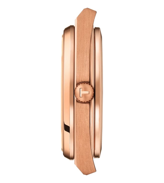 Add a classy touch to your attire by wearing this men's analog watch from the collection by Tissot. The blue round dial is protected by a sapphire glass. It features crown for time adjustment. The stainless steel strap flaunts a rose gold hue that accentuates the look of the watch. Besides, it is completed with a fold-over clasp with double push button safety clasp to ensure a secure fit on the wrist.