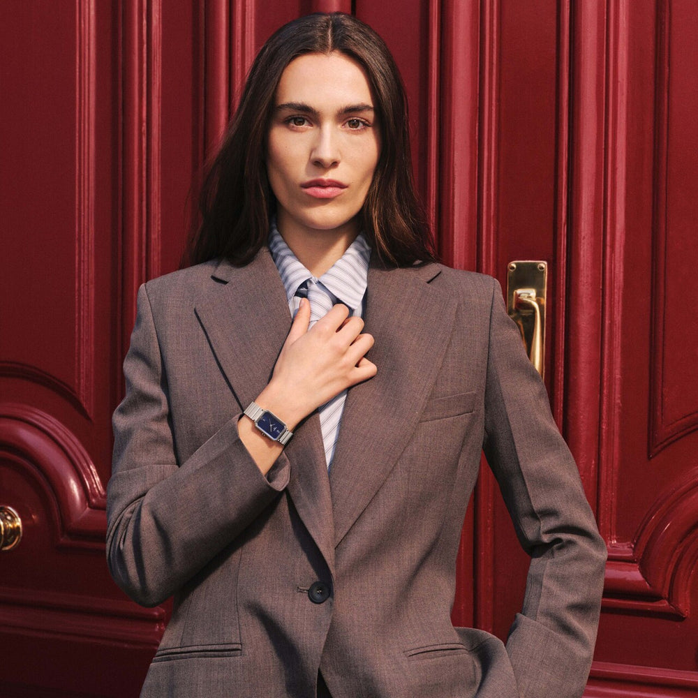 The SRV’s quartz movement delivers precision that empowers to move forward fiercely and, with the End-of-Life indicator, the SRV anticipates her next move, so she’s always prepared. More than a name, SRV stands for, Sapphire Rectangle V: a faceted sapphire glass with a rectangular silhouette, and the ‘V’ a nod to its 5-bar water resistance, symbolised by the roman number 5.