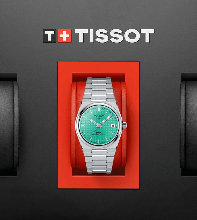 Look modish by donning this men's analog watch from the collection by TISSOT. The green tonneau dial is protected by a sapphire glass. It features a crown for time adjustment. The stainless steel strap comes in a grey hue that further elevates the look of the timekeeper. Besides, it is completed with a folding clasp with safety and push-buttons clasp to ensure a secure fit on the wrist.