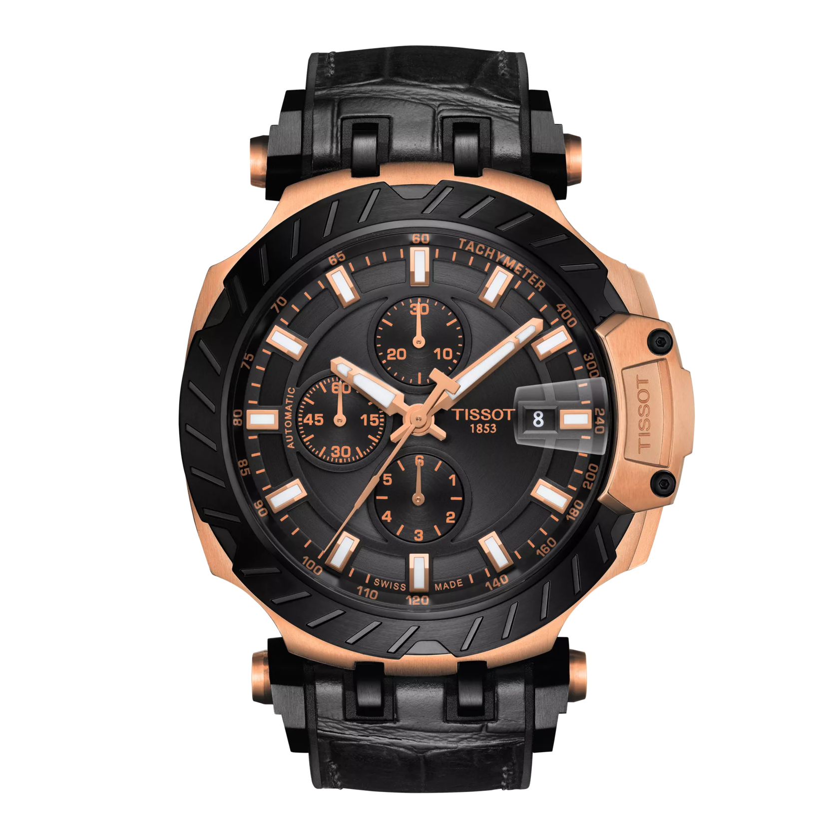 The Tissot T-Race Automatic Chronograph has a strong character and many details inspired by motorbike racing. With this automatic movement it is a must-have. The transparent case back is inspired by the shape of a motorcycle wheel. The brake-disc bezel is one of its iconic features. It is also portrayed on the oscillating mass of the automatic movement, seen through the transparent case back
