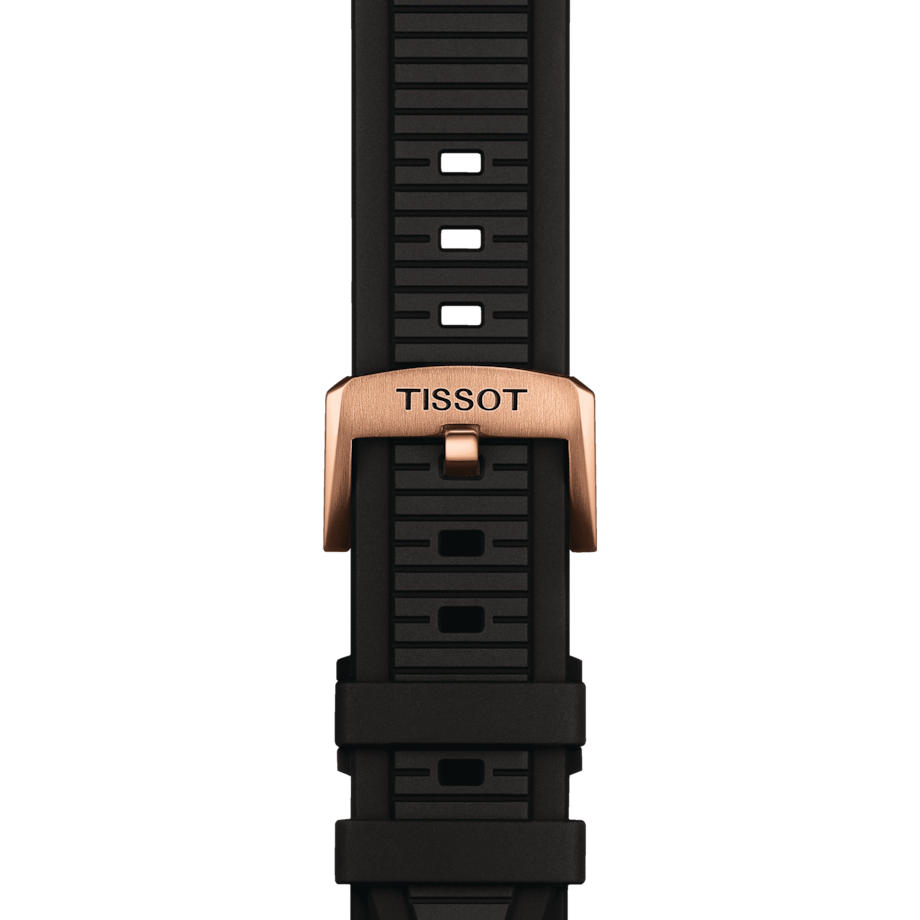 Add a stylish dimension to your look by wearing this men's analog watch from the collection by TISSOT. The black round dial is protected by a sapphire glass. It features a crown for time adjustment. The stainless steel strap comes in a black hue that further elevates the look of the timekeeper. Besides, it is completed with a buckle clasp to ensure a secure fit on the wrist.