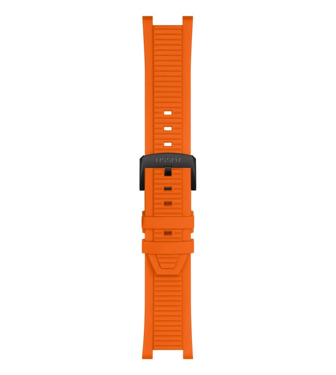 Amaze everyone around you by wearing this men's analog watch from the collection by Tissot. The black round dial is protected by a sapphire glass. It features crown for time adjustment. The silicon strap comes in a orange hue that further elevates the look of the timekeeper. Besides, it is completed with a buckle clasp to ensure a secure fit on the wrist.