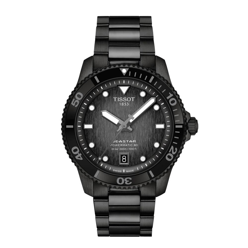 This updated edition of one of Tissot's main collections now introduces a 40mm casing option with the Powermatic 80 at its heart. For this new release, the casing has undergone a subtle transformation, incorporating a notch along its case edges, resulting in a more compact and sophisticated appearance. These timepieces are perfect for those in search of a sporty yet assertive accessory, offering water resistance up to 1000 feet (300 meters) and improved visibility in dim conditions thanks to the Super-LumiNova® coated hands and hour markers. This release features five distinct models, varying in dial colors and finishes from stainless steel to bi-colour combinations, including unique blue to black gradients and exclusive black PVD-coated options.