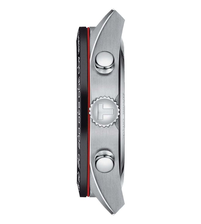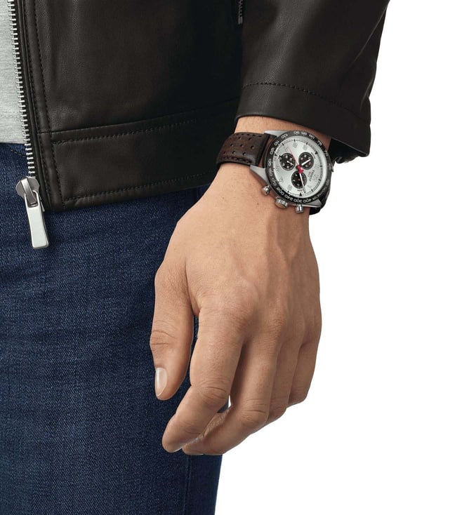 A perfect amalgamation of style and functionality, this men's watch from the T-Sport collection by Tissot is a must-have wrist essential. Safeguarded by a sapphire glass and operated by a Swiss quartz movement, the round dial is encompassed in a 45 mm case. It features chronograph functionality and a crown for time adjustment. The strap is crafted with care using genuine leather that gives a good finish.