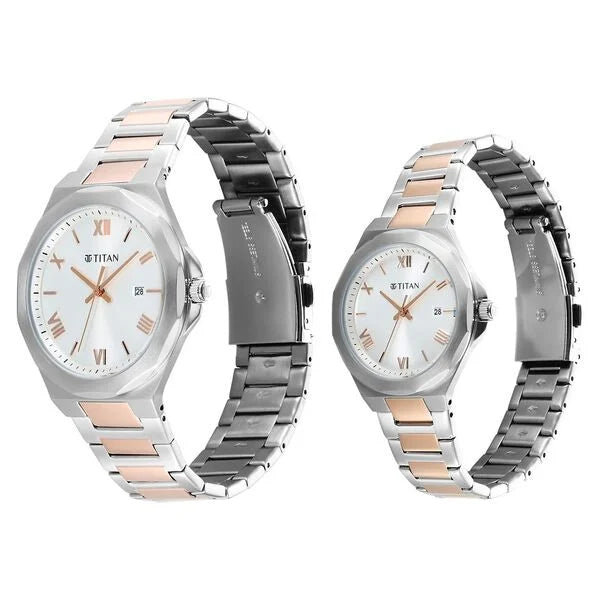 Titan Bandhan Quartz Analog with Date Silver Dial Two Toned Stainless Steel Strap Watch For Couple 9401094210km01