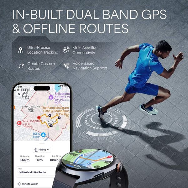 Experience powerful performance and everyday convenience with this premium smartwatch featuring a vibrant 1.43" AMOLED display with 1000 nits brightness and a sharp 466x466 resolution. Stay adventure-ready with dual-band GPS, ABC sensors, Offline Maps, and Return-to-Start, while advanced fitness tools like Zone2 Training, Training Load & Readiness, MET Score, and Standing Goal keep your workouts smarter. Monitor your well-being with a complete 24/7 Health Suite, including HRM, SpO2, Sleep & Nap Detection, Vitality Score, and Smart Hydration. Built with a durable aluminum case and rotary crown, it also packs smart features like Titan Q, BT calling, Offline Music, AI Day Brief, To-Do lists, alarms, timers, adaptive watch faces, and a premium hybrid strap-delivering the perfect balance of style, intelligence, and performance.